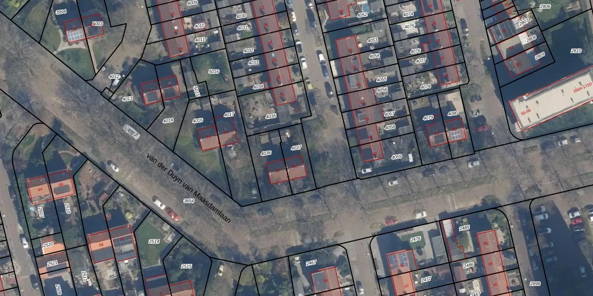 Gebruik de zoekbalk of klik op een perceel om informatie over het perceel te bekijken.
