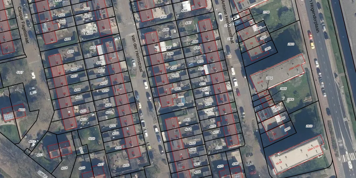 Gebruik de zoekbalk of klik op een perceel om informatie over het perceel te bekijken.