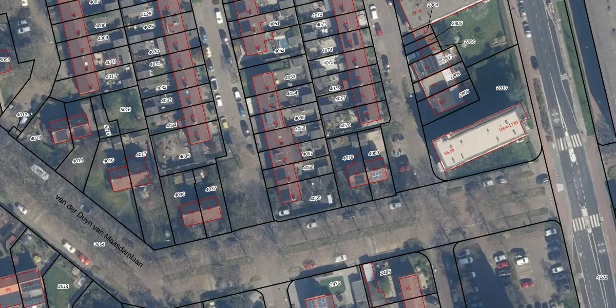 Gebruik de zoekbalk of klik op een perceel om informatie over het perceel te bekijken.