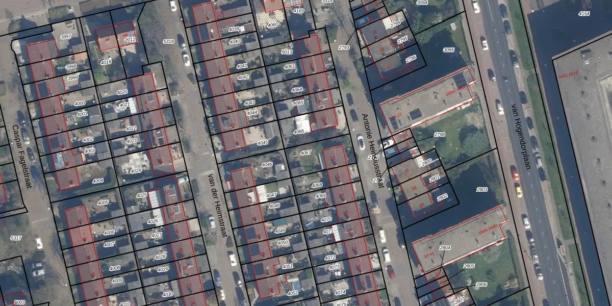 Gebruik de zoekbalk of klik op een perceel om informatie over het perceel te bekijken.