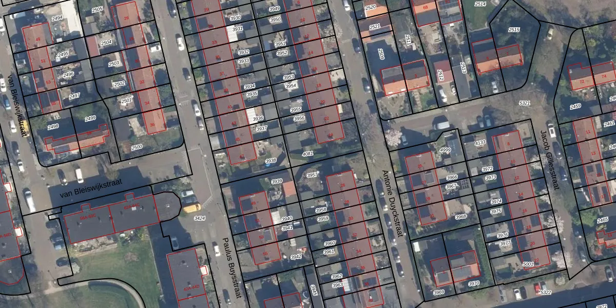 Gebruik de zoekbalk of klik op een perceel om informatie over het perceel te bekijken.