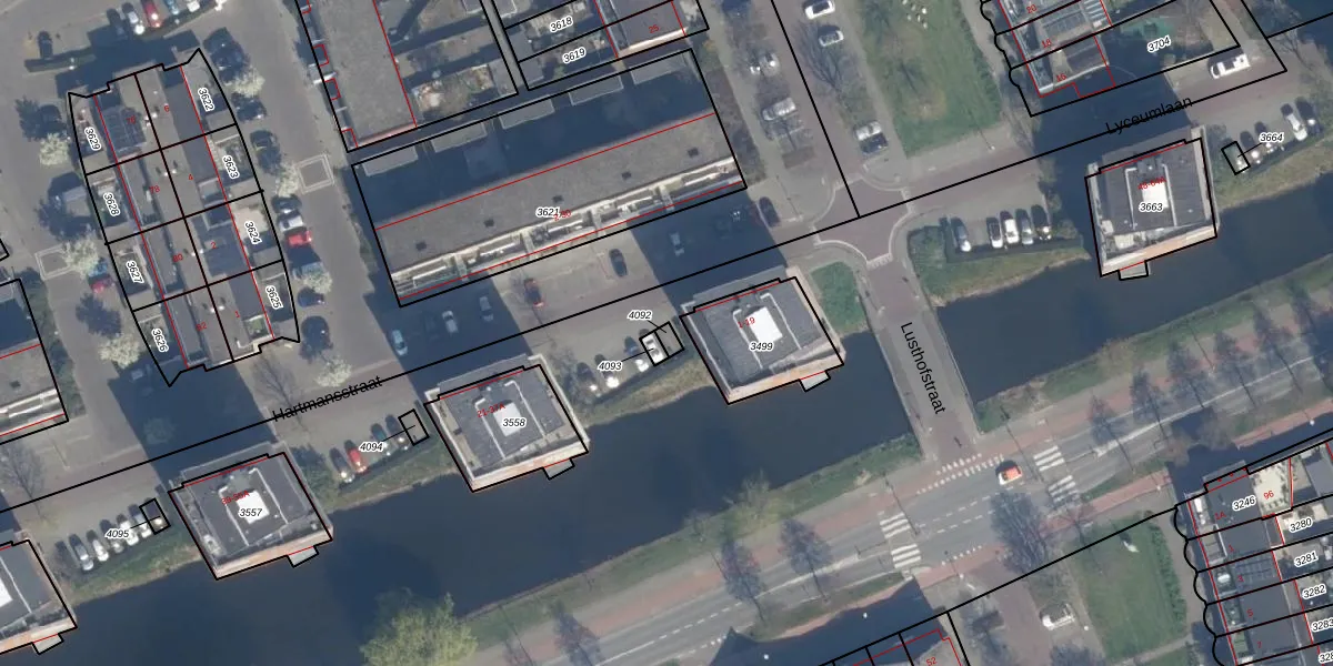 Gebruik de zoekbalk of klik op een perceel om informatie over het perceel te bekijken.