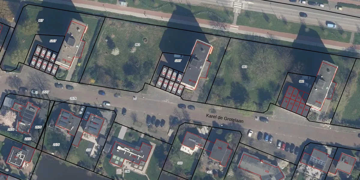 Gebruik de zoekbalk of klik op een perceel om informatie over het perceel te bekijken.