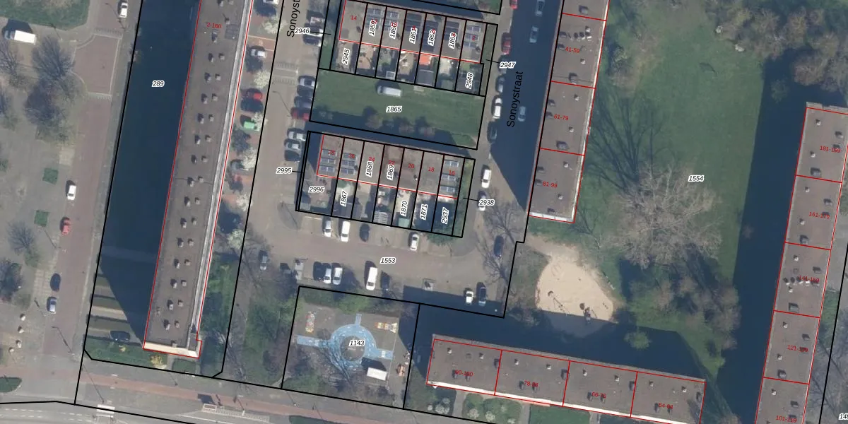 Gebruik de zoekbalk of klik op een perceel om informatie over het perceel te bekijken.