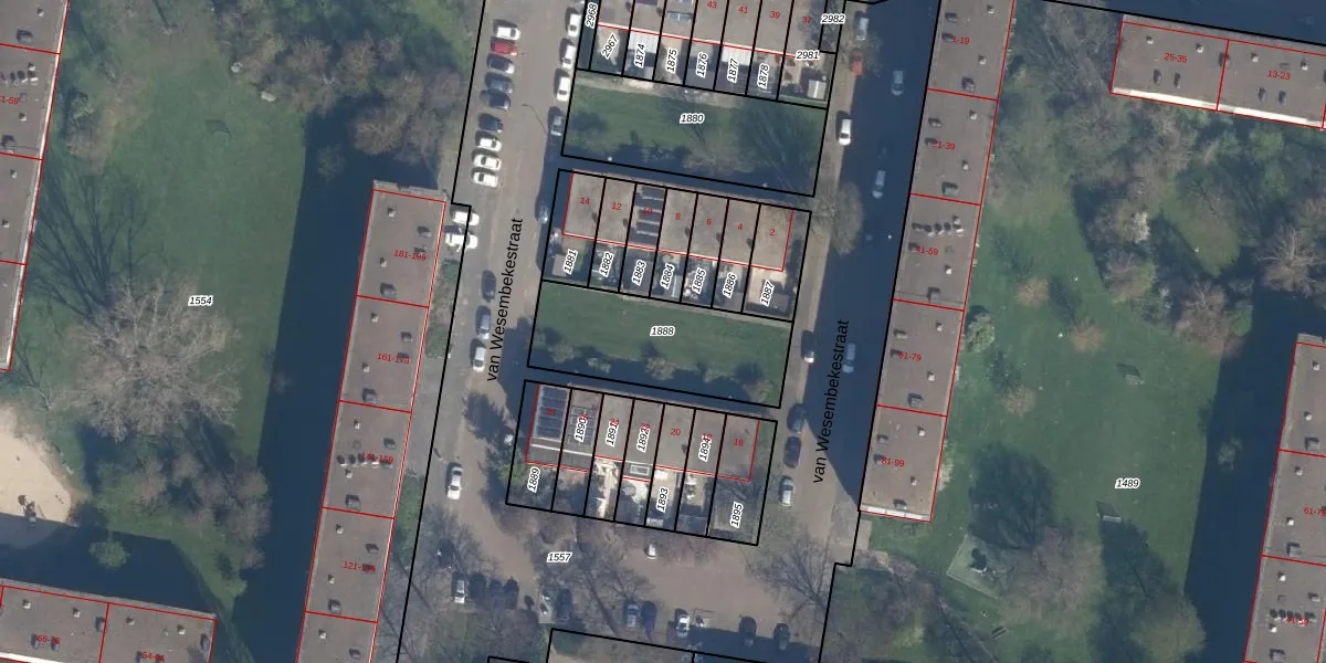 Gebruik de zoekbalk of klik op een perceel om informatie over het perceel te bekijken.