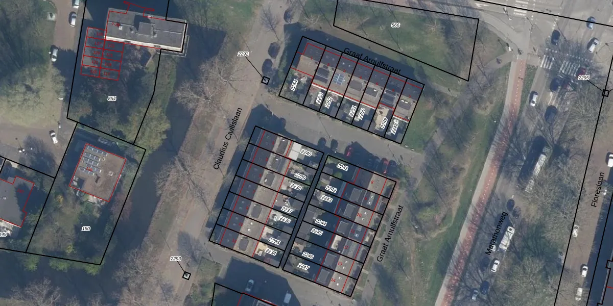 Gebruik de zoekbalk of klik op een perceel om informatie over het perceel te bekijken.