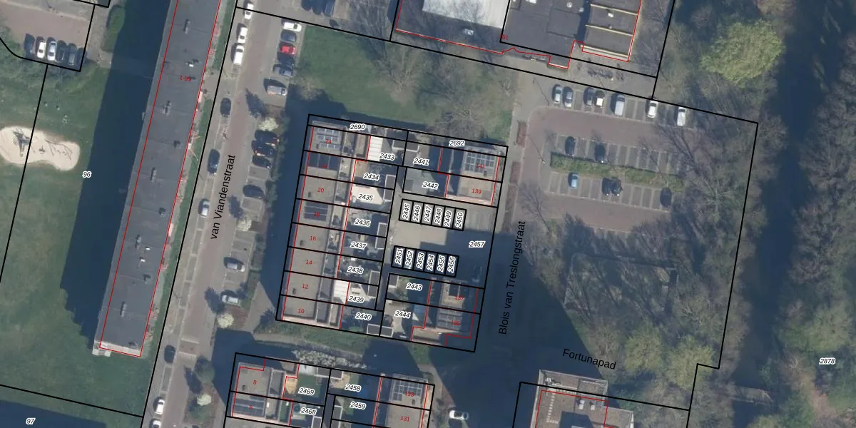 Gebruik de zoekbalk of klik op een perceel om informatie over het perceel te bekijken.