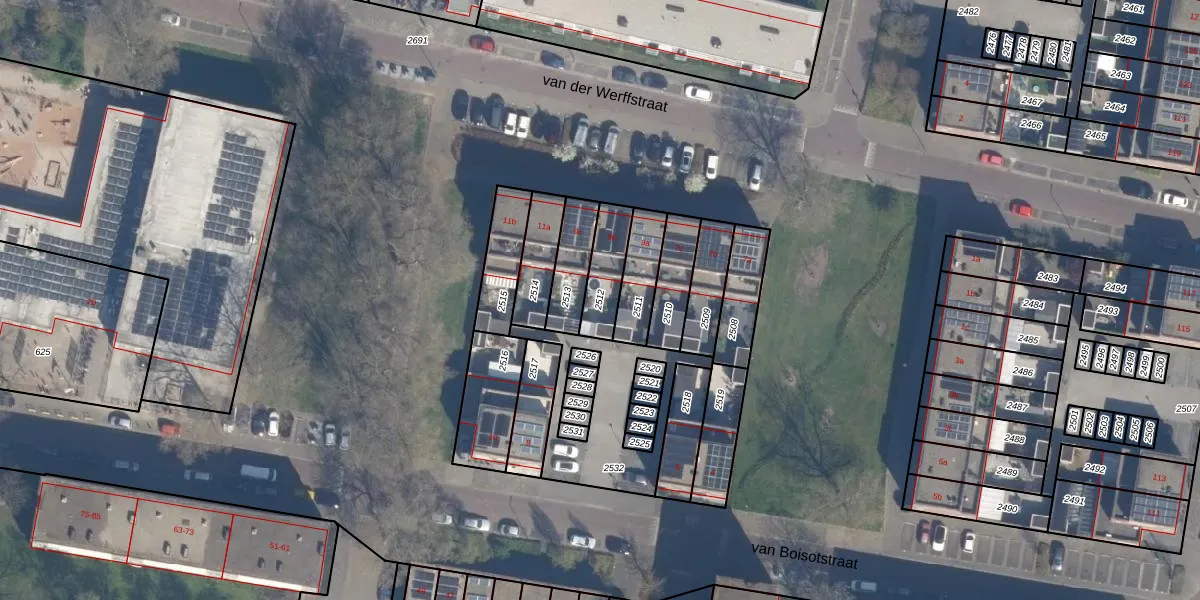 Gebruik de zoekbalk of klik op een perceel om informatie over het perceel te bekijken.