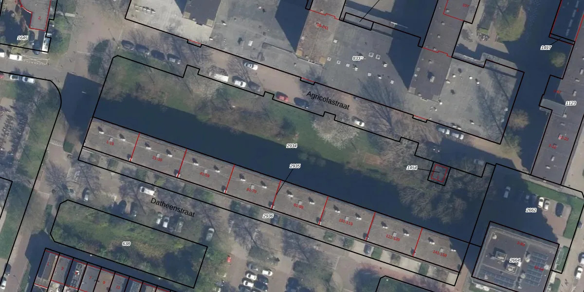 Gebruik de zoekbalk of klik op een perceel om informatie over het perceel te bekijken.