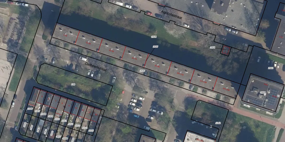 Gebruik de zoekbalk of klik op een perceel om informatie over het perceel te bekijken.