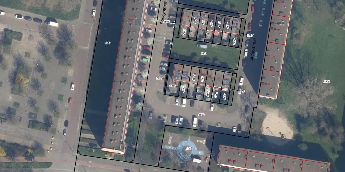 Gebruik de zoekbalk of klik op een perceel om informatie over het perceel te bekijken.