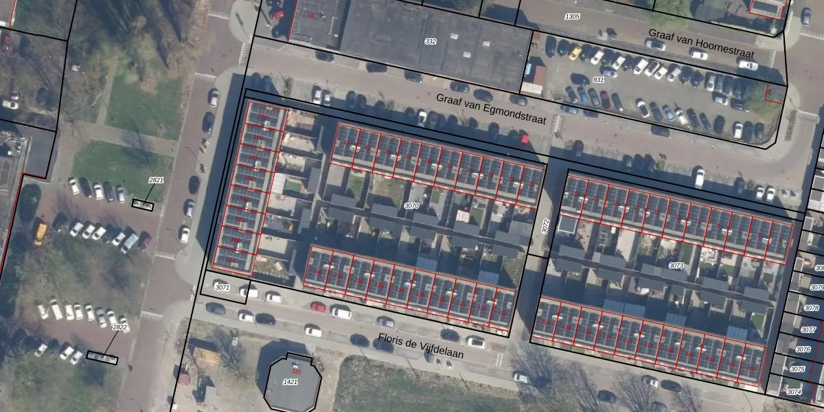 Gebruik de zoekbalk of klik op een perceel om informatie over het perceel te bekijken.