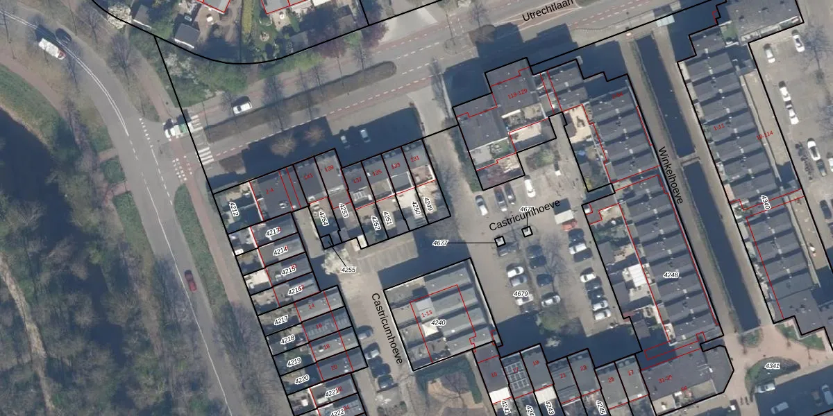 Gebruik de zoekbalk of klik op een perceel om informatie over het perceel te bekijken.