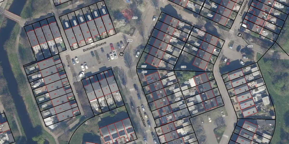 Gebruik de zoekbalk of klik op een perceel om informatie over het perceel te bekijken.