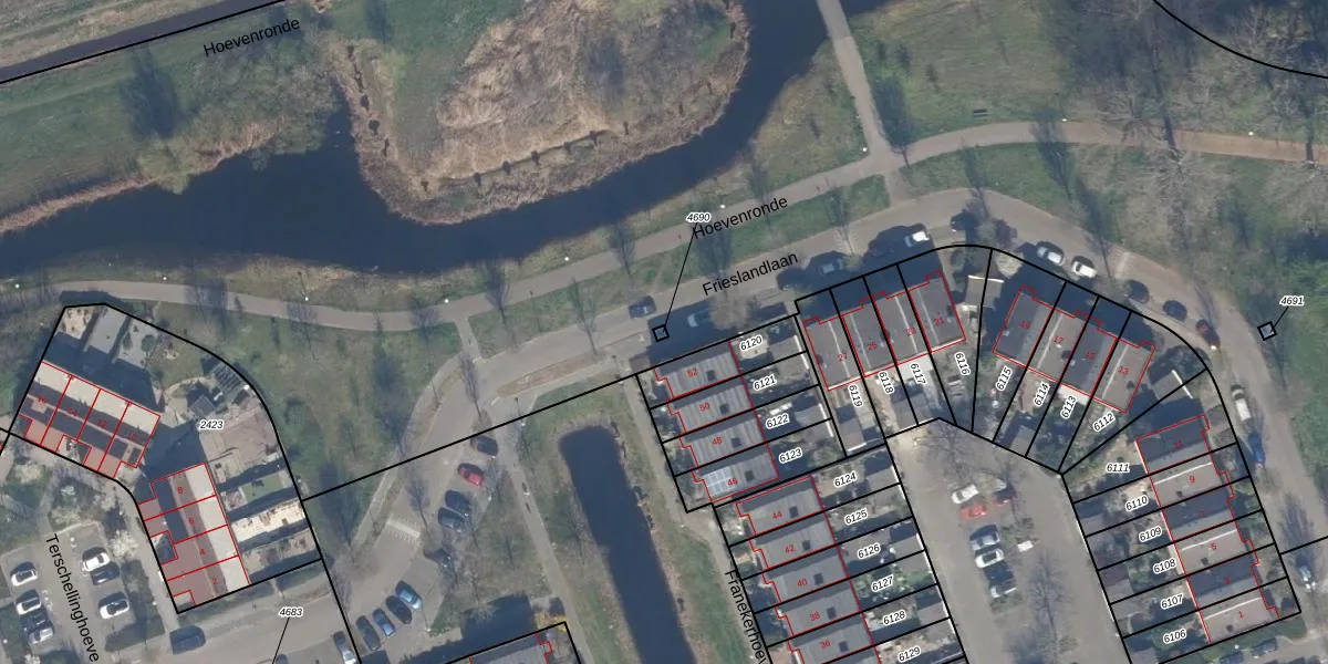 Gebruik de zoekbalk of klik op een perceel om informatie over het perceel te bekijken.