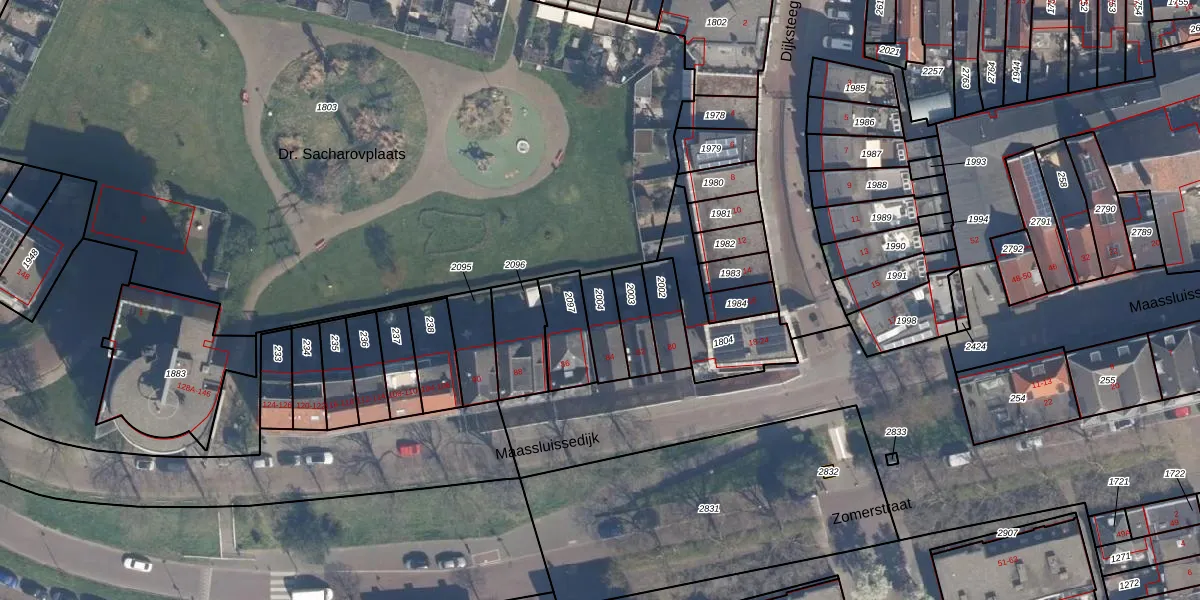 Gebruik de zoekbalk of klik op een perceel om informatie over het perceel te bekijken.