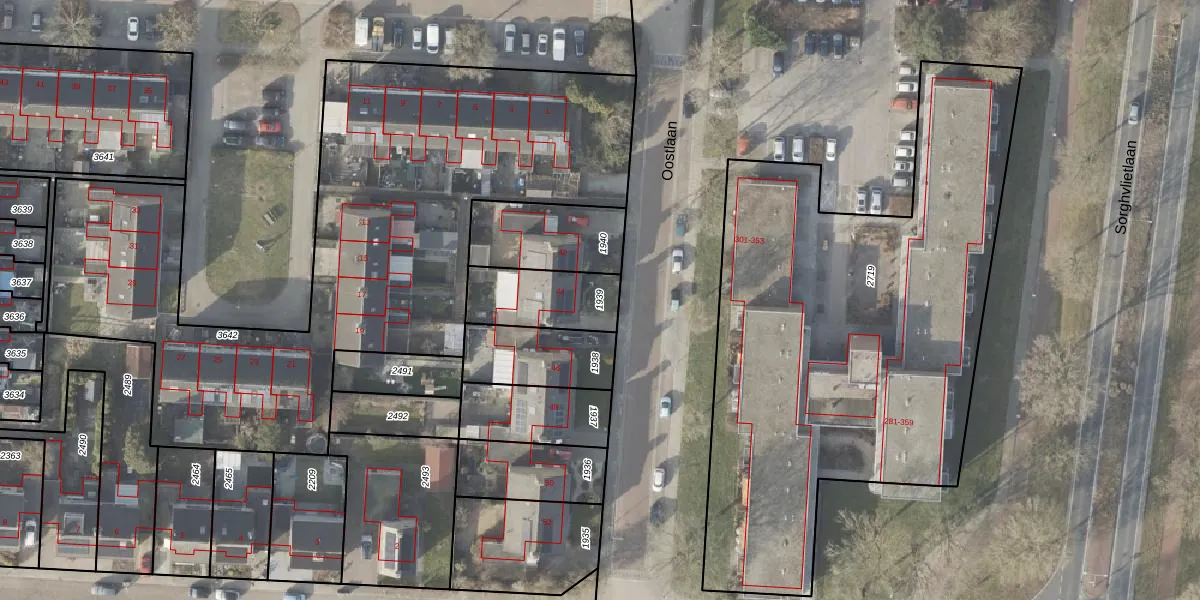 Gebruik de zoekbalk of klik op een perceel om informatie over het perceel te bekijken.