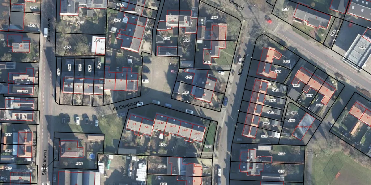 Gebruik de zoekbalk of klik op een perceel om informatie over het perceel te bekijken.