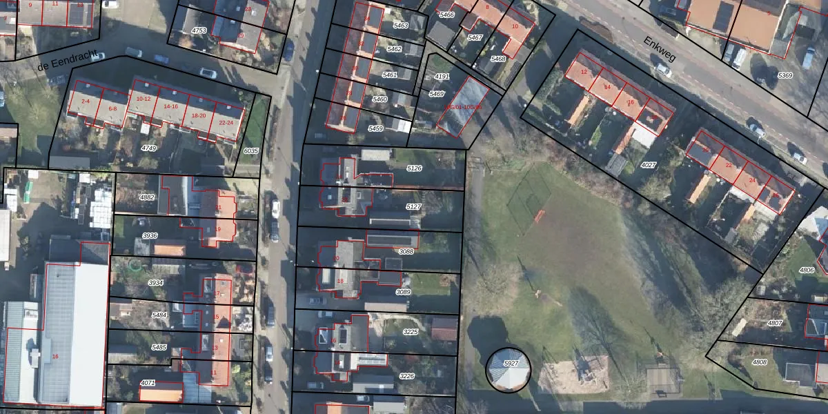 Gebruik de zoekbalk of klik op een perceel om informatie over het perceel te bekijken.