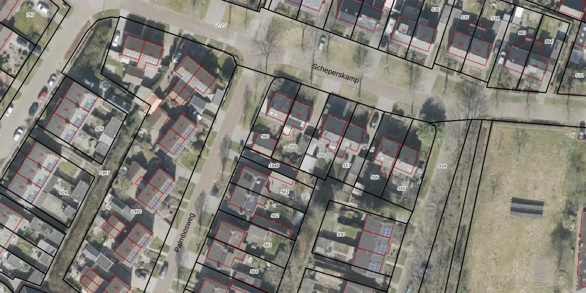 Gebruik de zoekbalk of klik op een perceel om informatie over het perceel te bekijken.