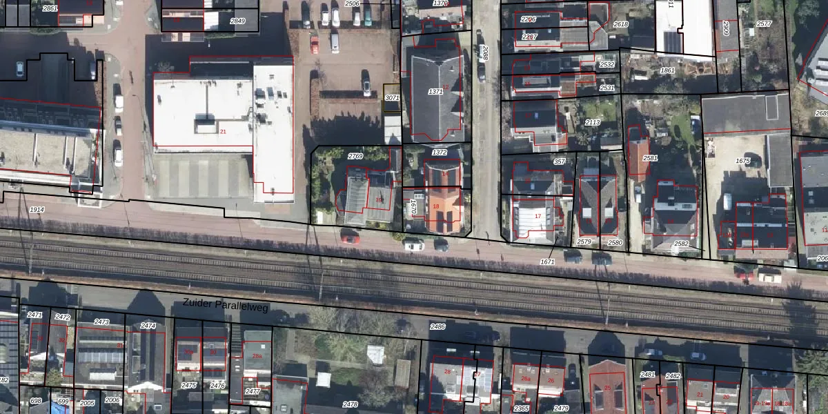 Gebruik de zoekbalk of klik op een perceel om informatie over het perceel te bekijken.
