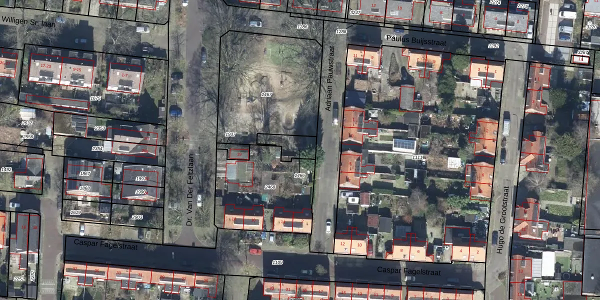 Gebruik de zoekbalk of klik op een perceel om informatie over het perceel te bekijken.