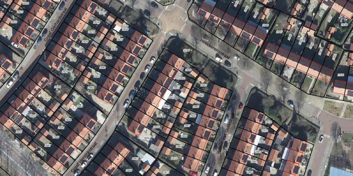 Gebruik de zoekbalk of klik op een perceel om informatie over het perceel te bekijken.