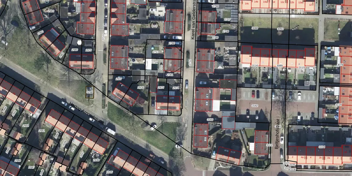 Gebruik de zoekbalk of klik op een perceel om informatie over het perceel te bekijken.