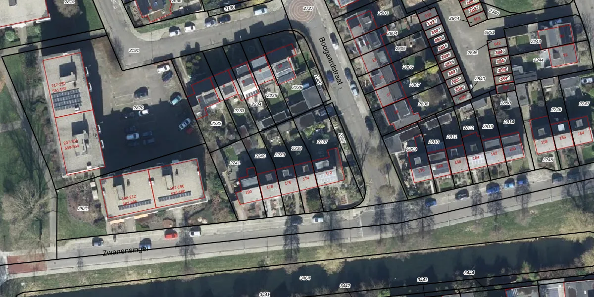 Gebruik de zoekbalk of klik op een perceel om informatie over het perceel te bekijken.