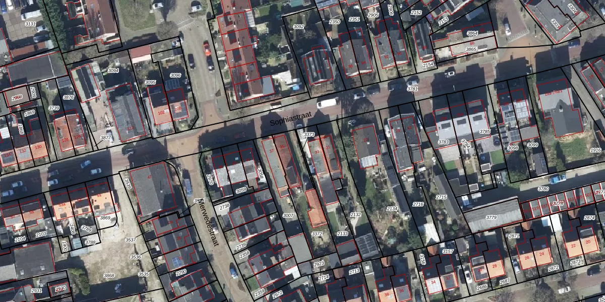Gebruik de zoekbalk of klik op een perceel om informatie over het perceel te bekijken.