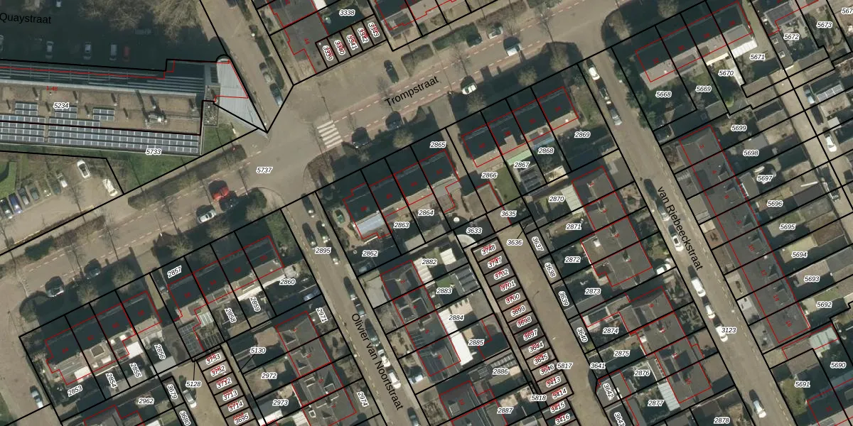Gebruik de zoekbalk of klik op een perceel om informatie over het perceel te bekijken.
