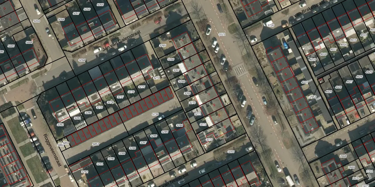 Gebruik de zoekbalk of klik op een perceel om informatie over het perceel te bekijken.