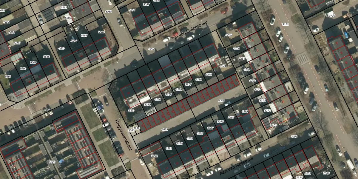 Gebruik de zoekbalk of klik op een perceel om informatie over het perceel te bekijken.