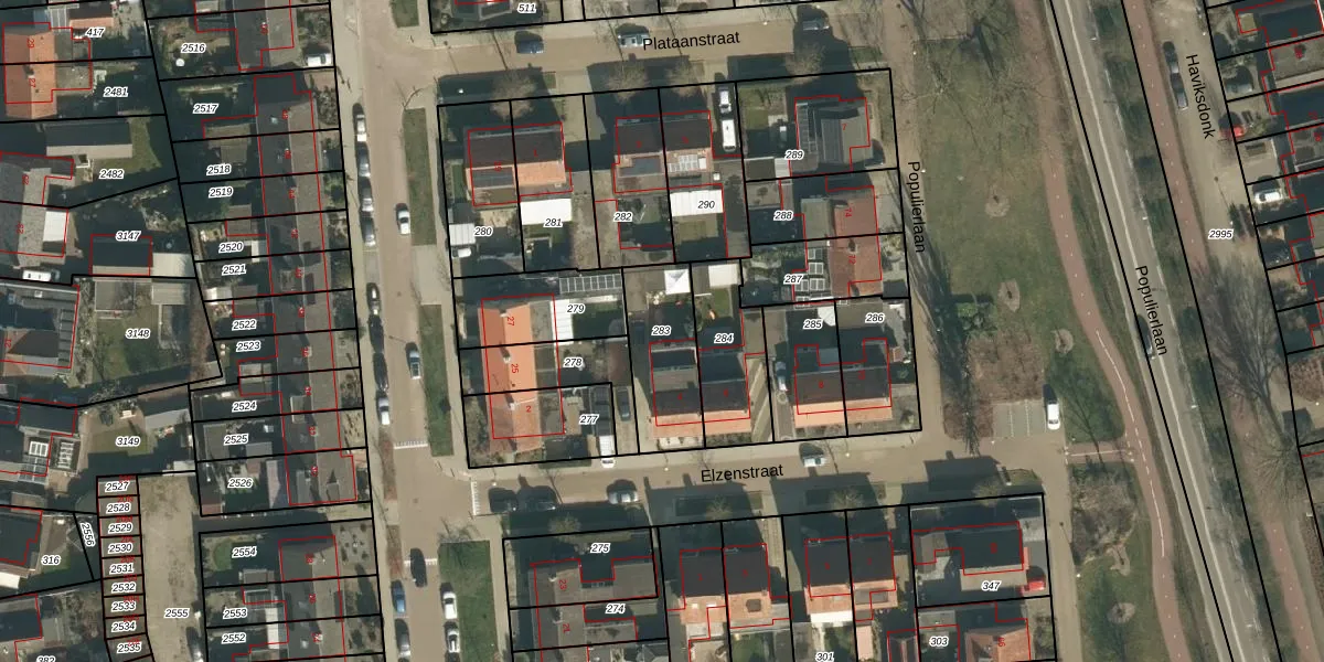 Gebruik de zoekbalk of klik op een perceel om informatie over het perceel te bekijken.