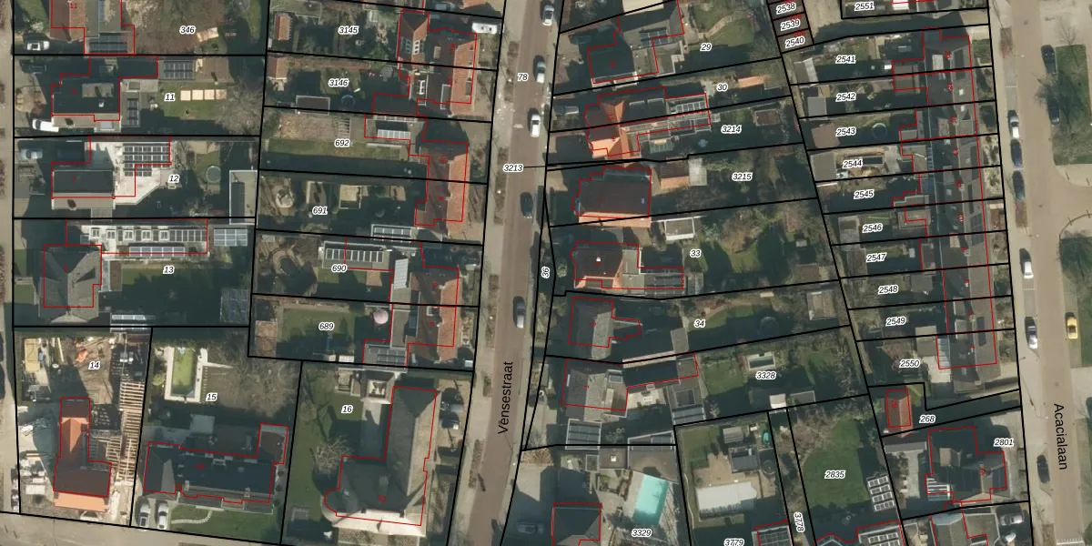Gebruik de zoekbalk of klik op een perceel om informatie over het perceel te bekijken.