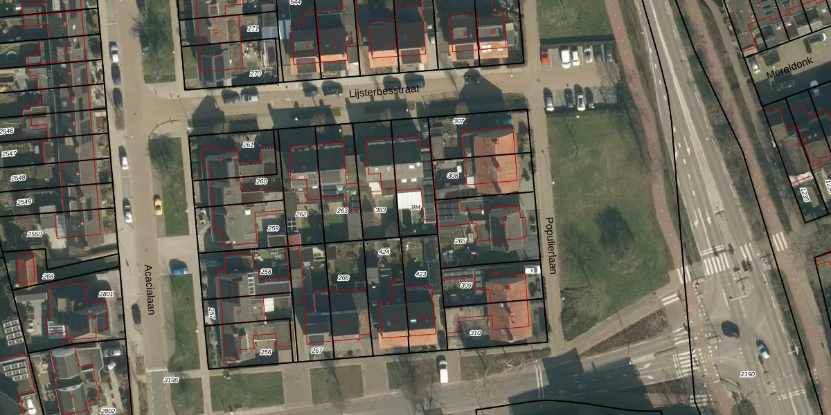 Gebruik de zoekbalk of klik op een perceel om informatie over het perceel te bekijken.