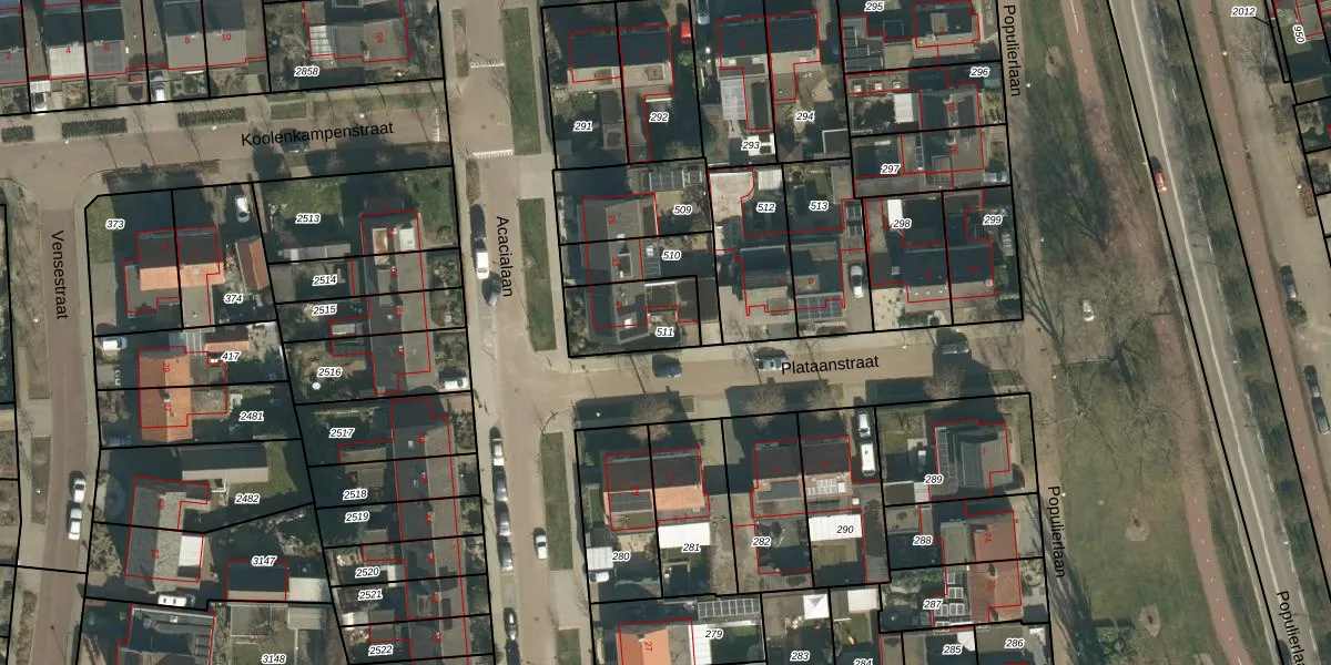 Gebruik de zoekbalk of klik op een perceel om informatie over het perceel te bekijken.