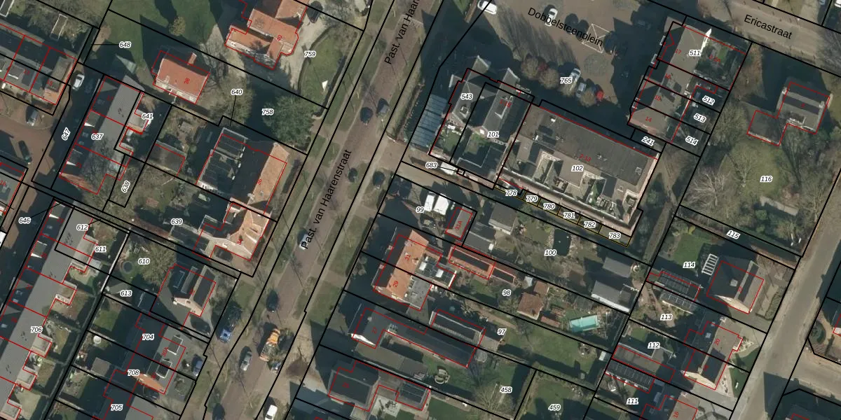Gebruik de zoekbalk of klik op een perceel om informatie over het perceel te bekijken.