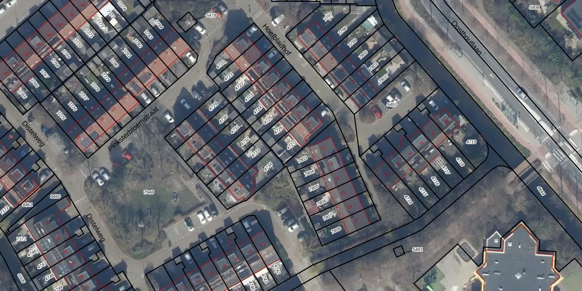 Gebruik de zoekbalk of klik op een perceel om informatie over het perceel te bekijken.