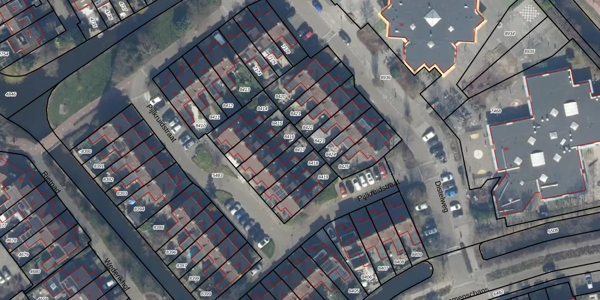 Gebruik de zoekbalk of klik op een perceel om informatie over het perceel te bekijken.