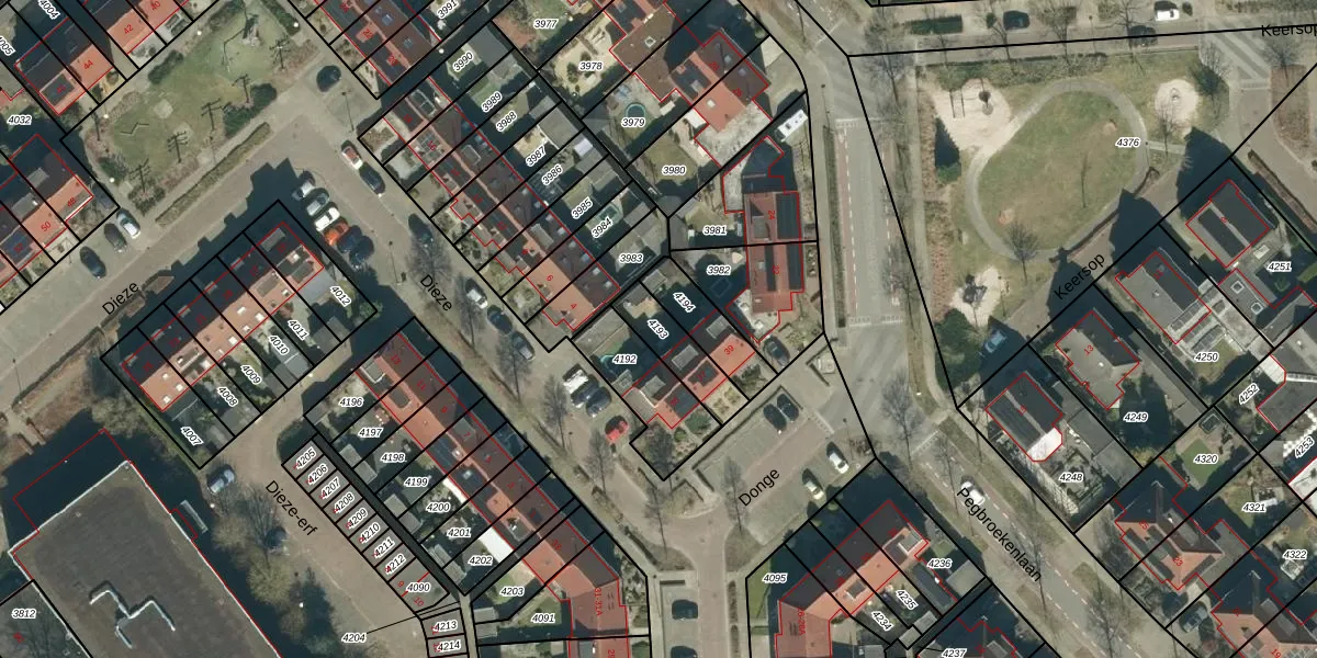 Gebruik de zoekbalk of klik op een perceel om informatie over het perceel te bekijken.