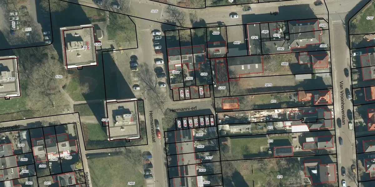 Gebruik de zoekbalk of klik op een perceel om informatie over het perceel te bekijken.
