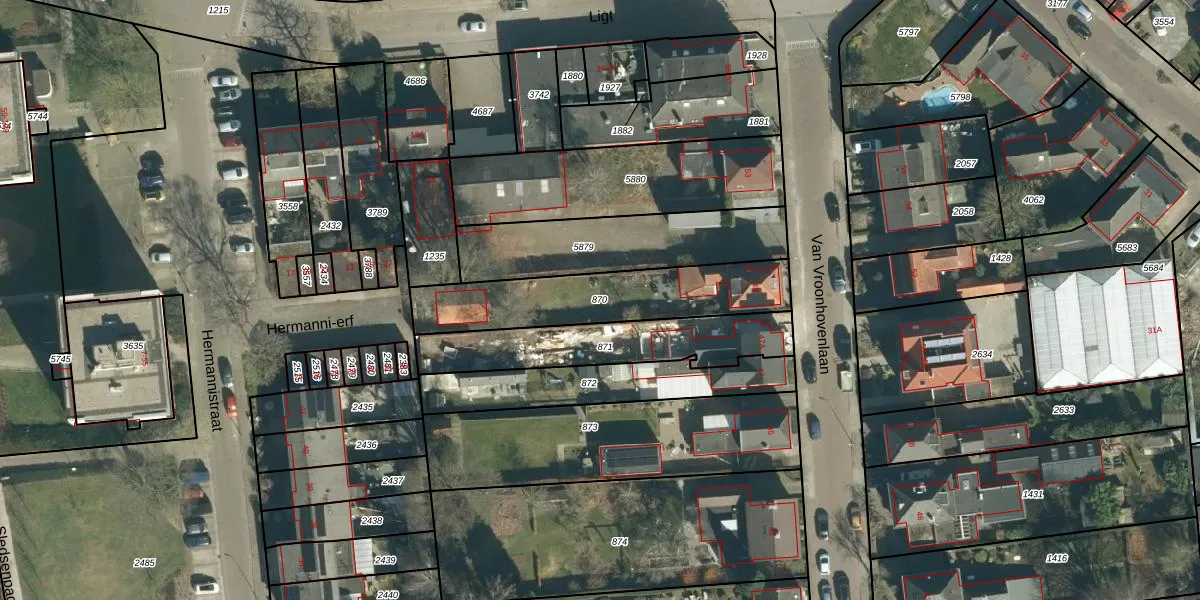 Gebruik de zoekbalk of klik op een perceel om informatie over het perceel te bekijken.