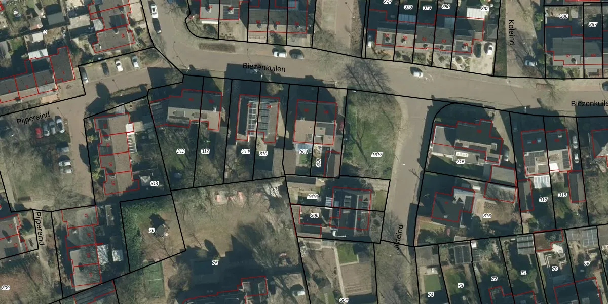 Gebruik de zoekbalk of klik op een perceel om informatie over het perceel te bekijken.