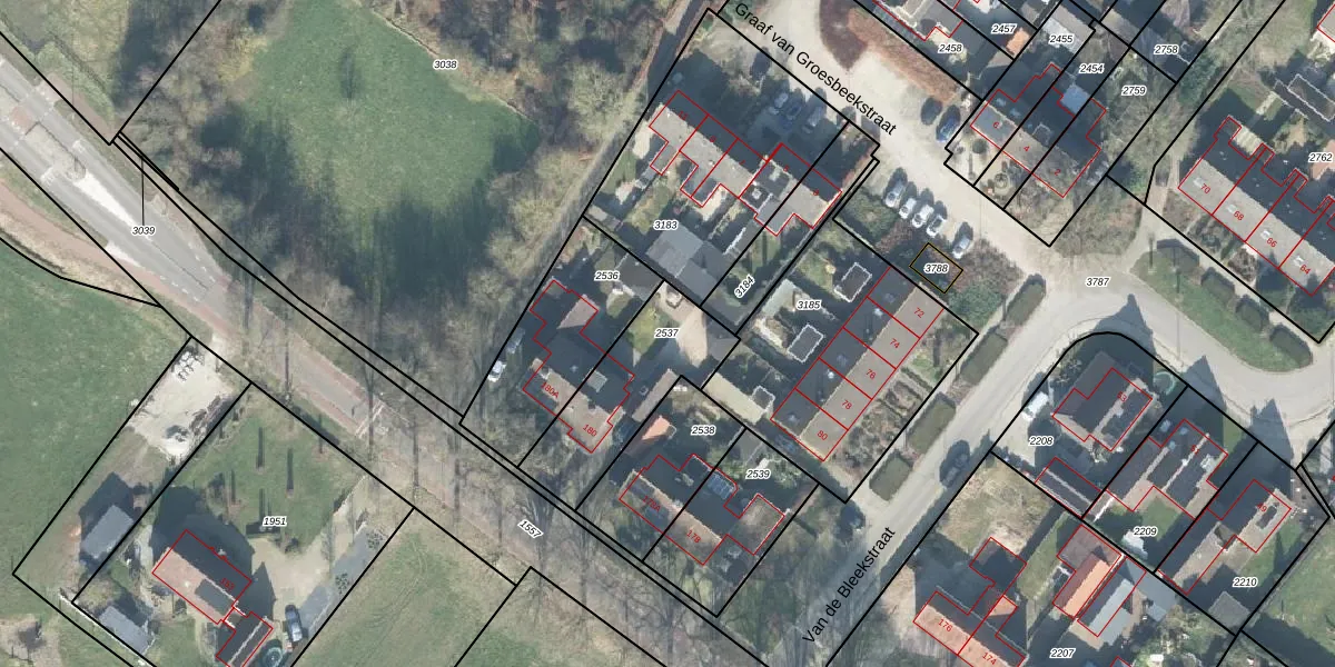 Gebruik de zoekbalk of klik op een perceel om informatie over het perceel te bekijken.