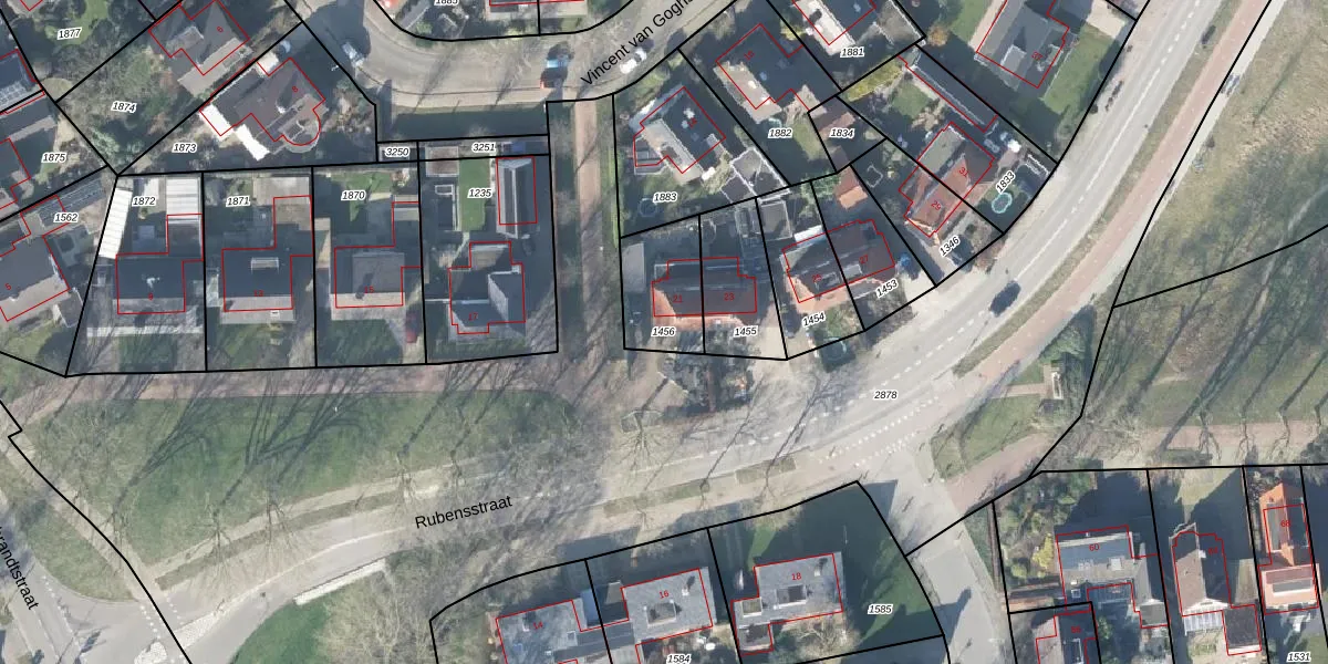Gebruik de zoekbalk of klik op een perceel om informatie over het perceel te bekijken.