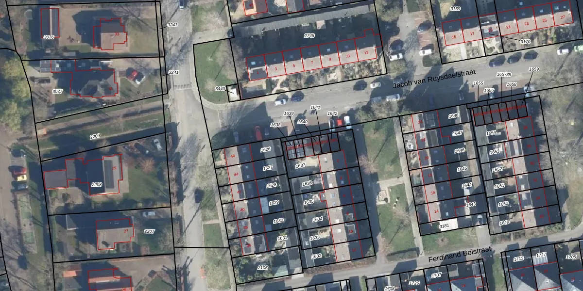 Gebruik de zoekbalk of klik op een perceel om informatie over het perceel te bekijken.