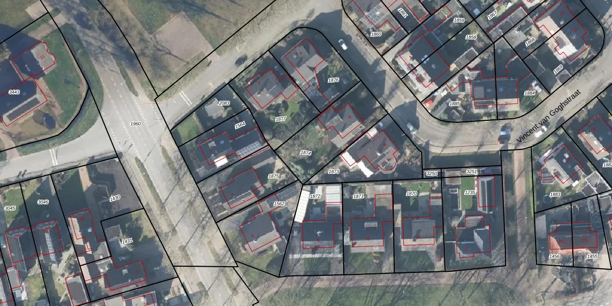 Gebruik de zoekbalk of klik op een perceel om informatie over het perceel te bekijken.