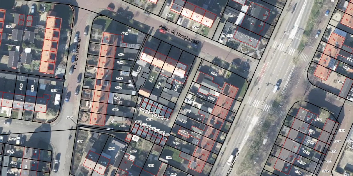 Gebruik de zoekbalk of klik op een perceel om informatie over het perceel te bekijken.