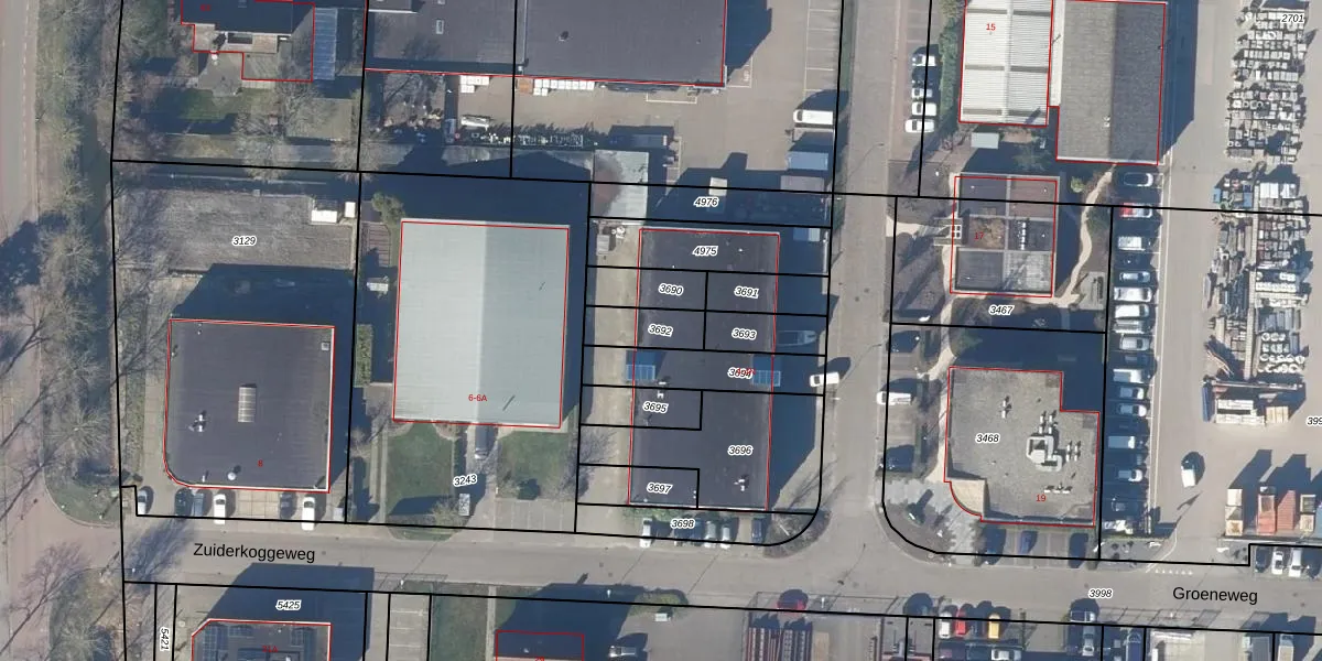 Gebruik de zoekbalk of klik op een perceel om informatie over het perceel te bekijken.